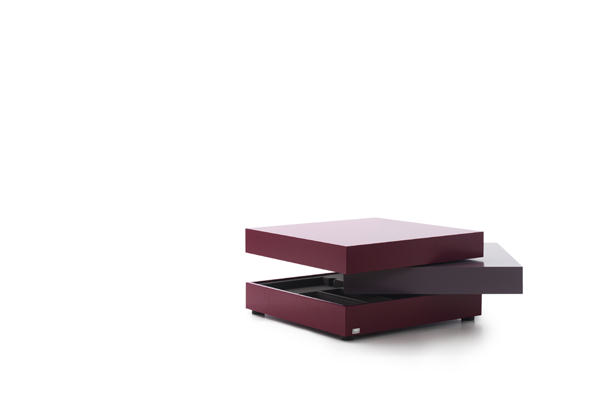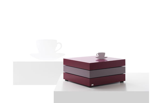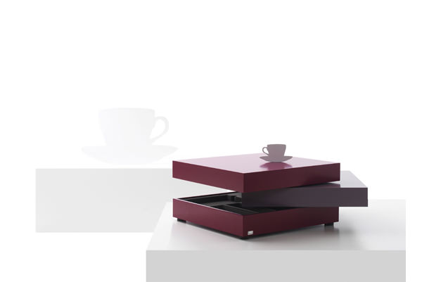 Lassen Sie Ihren Blocco so bunt werden, wie Sie möchten: Für jede der drei quadratischen Tischplatten können Sie eine unterschiedliche Farbe wählen. Die obersten Teile lassen sich drehen, so dass Sie die Platte bei Bedarf näher an sich heranziehen können. Unten im Blocco finden Sie praktische Ablagefächer für kleinere Dinge wie Zeitschriften oder eine Fernbedienung.