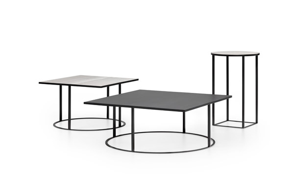 Durch die Kombination von rechten Winkeln und Kreisen entstehen gelegentlich optische Täuschungen. Und das verleiht den Prismo-Tischen ein interessantes visuelles Erscheinungsbild. Darüber hinaus ist es die Balance, die verfeinerte Synthese zwischen dem schlanken Rahmen und der Keramikplatte. Zeitloses Design für Einrichtungen, die mit Sorgfalt und Liebe ausgestaltet worden sind.